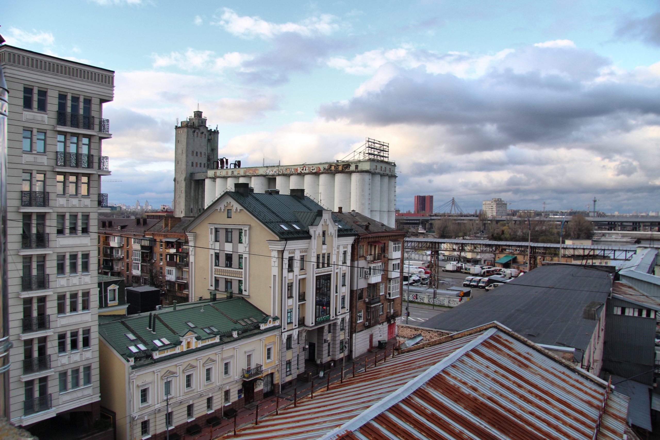 Це потаємна точка, і потрапити на неї непросто, адже млин у приватній власності, тому варто домовитись із господарями а потім не злякатись висоти і зовнішніх пожежних сходів. Але краєвид звідти відкривається дуже красивий і цікавий – вулиця Спаська, подвір’я мікрорайону млинів, бурса й інша старовинна забудова, чудова перспектива вулиці Спаської і трохи Дніпра.