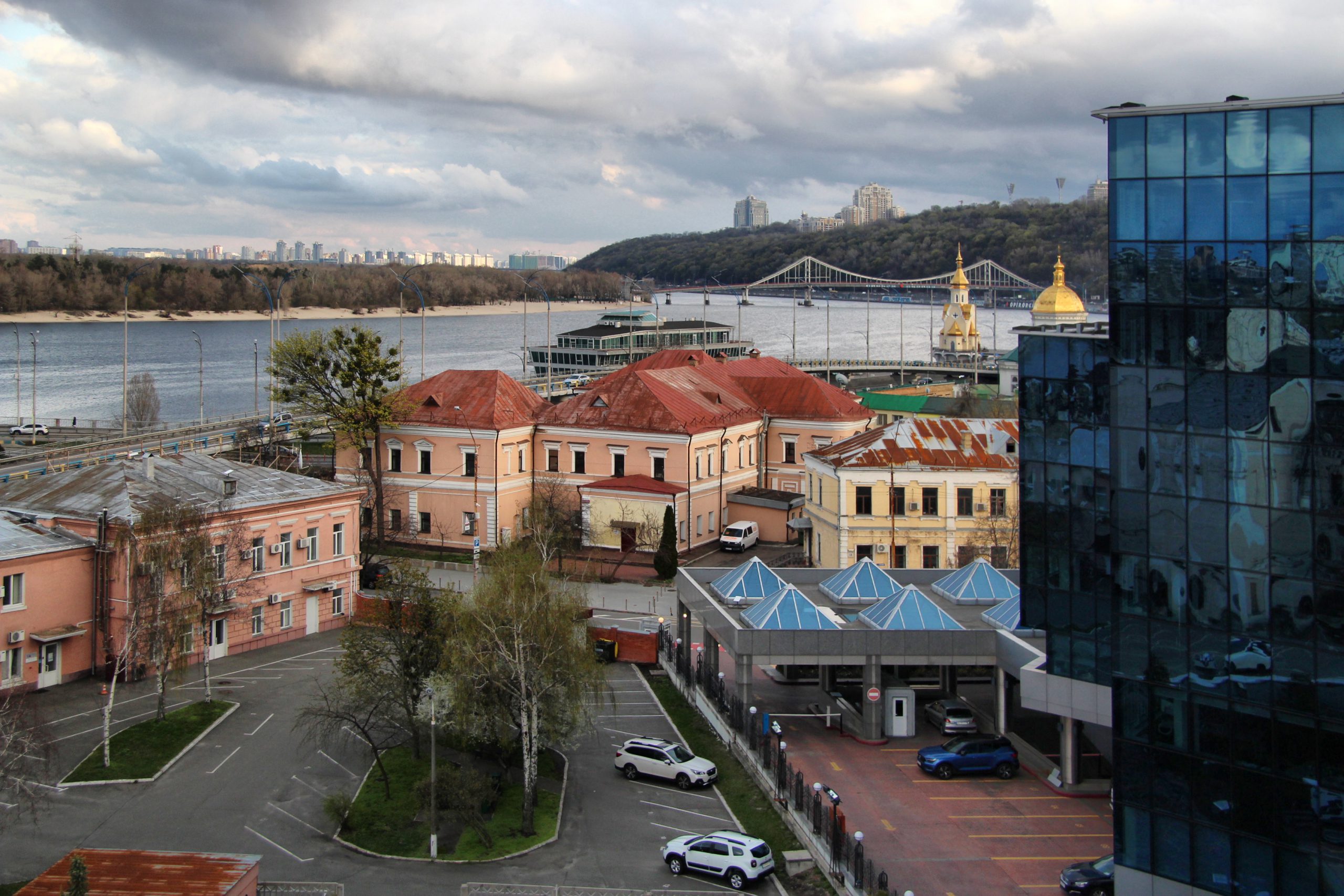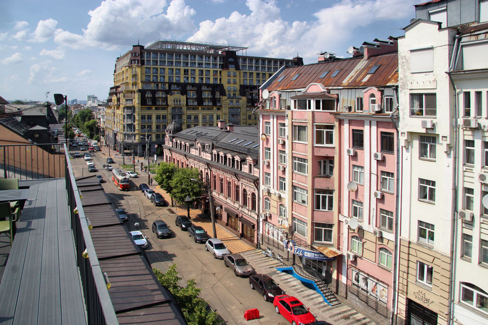 Цей готель менший від «Інтерконтиненталю», але також має ресторан із відкритою терасою. З тераси бачимо перспективу вулиці Костянтинівської, шматок Подолу і дуже добре видно чудове українське бароко Музею «Кам’яниця київського війта».