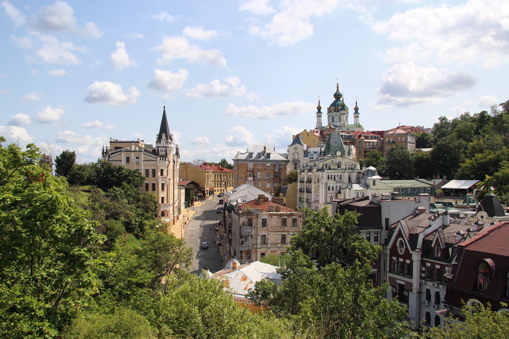 - Краєвид на Андріївський узвіз, з Андріївською церквою та «Замком Ричарда»