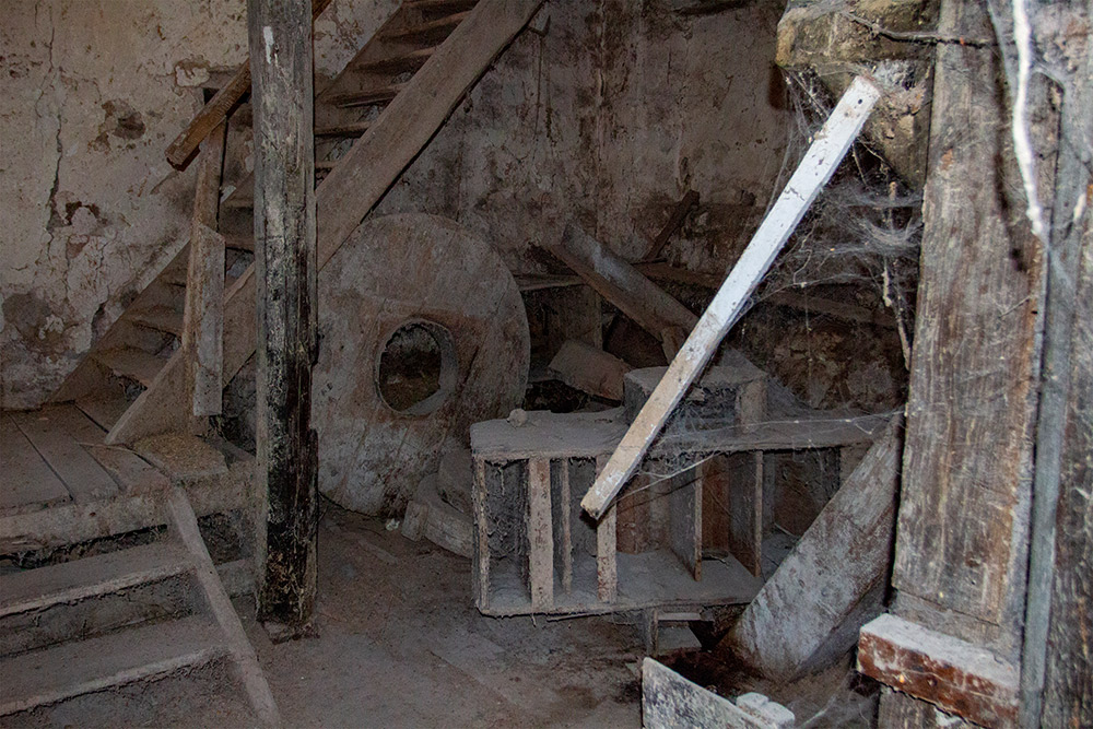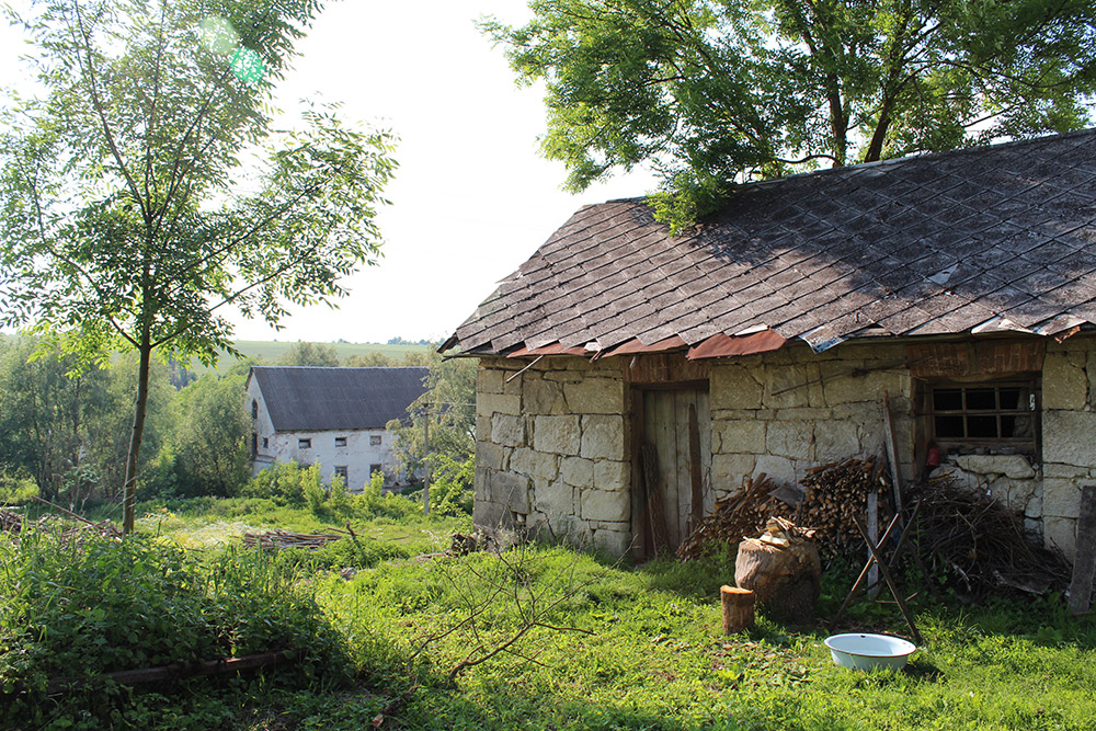 Біля млина поруч стоїть дуже цікаве обійстя. Такий собі міні-скансен. Це майже повністю збережена садиба чи то багатого селянина, чи то небагатого поміщика: файний мурований будинок десь кінця ХІХ століття з господарськими спорудами та огорожею з «дикого» каменю.