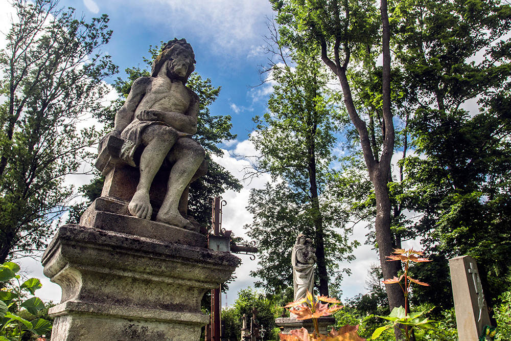 Найвідоміший «Скорботний Ісус» України сидить і журиться над нашими гріхами у Львові на знаменитій Каплиці Боїмів. Сама каплиця й згадана фігура надзвичайно відомі, тому зупинятися на цій пам’ятці ми не будемо. Фігуру, до речі, нещодавно реставрували, і про це було чимало повідомлень у медіа.