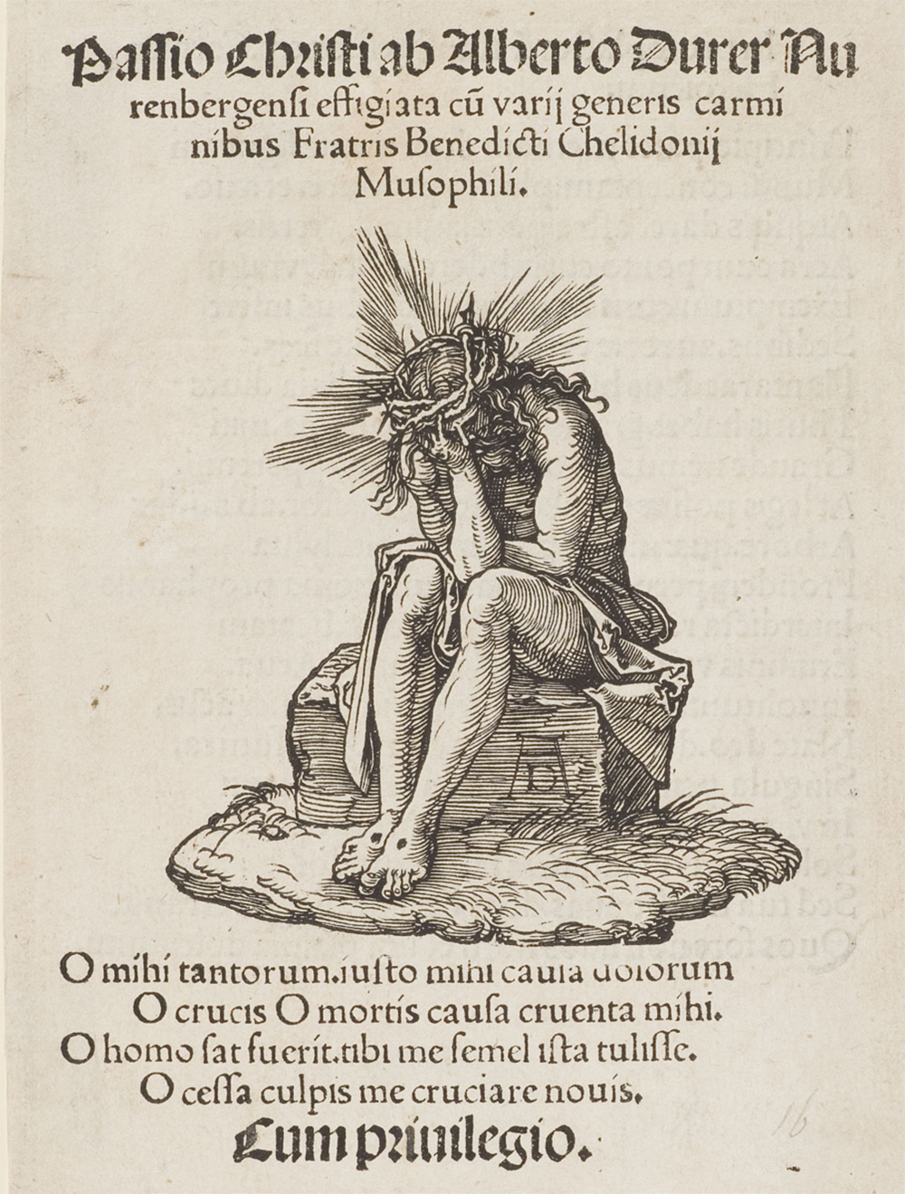 Перші образи зажуреного Ісуса з’явилися ще у XIV ст. в Німеччині та Голландії. Поширенню ж сюжету посприяв Альбрехт Дюрер. Цей німецький художник, що працював на рубежі XV–XVI століть, розмістив фігуру засмученого Ісуса, який ховає обличчя в долонях, на титульній сторінці ксилографії «Малі страсті» (1509–1511).