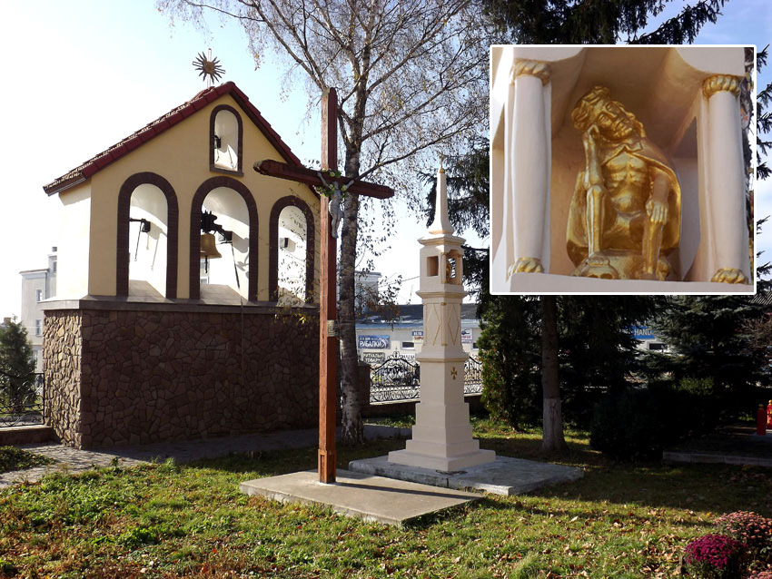 Пам’ятник увінчує фігура Скорботного Ісуса.