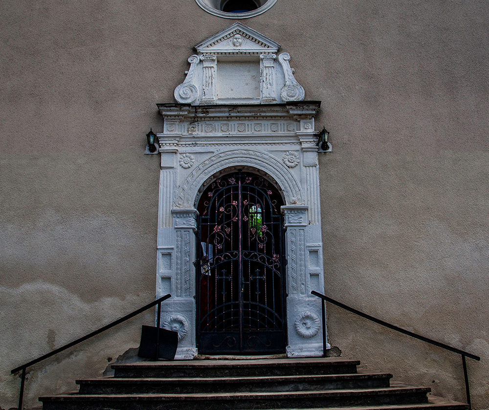 - Для порівняння, – портал сусіднього костелу (1591 р.)