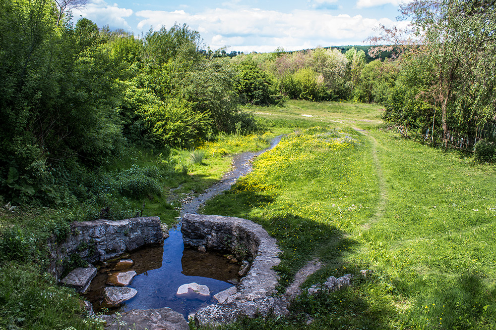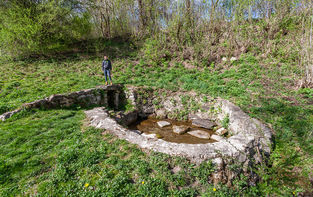 Друге джерело, забране у складене з вапнякових брил кільце, й досі служить звичайною криничкою.
