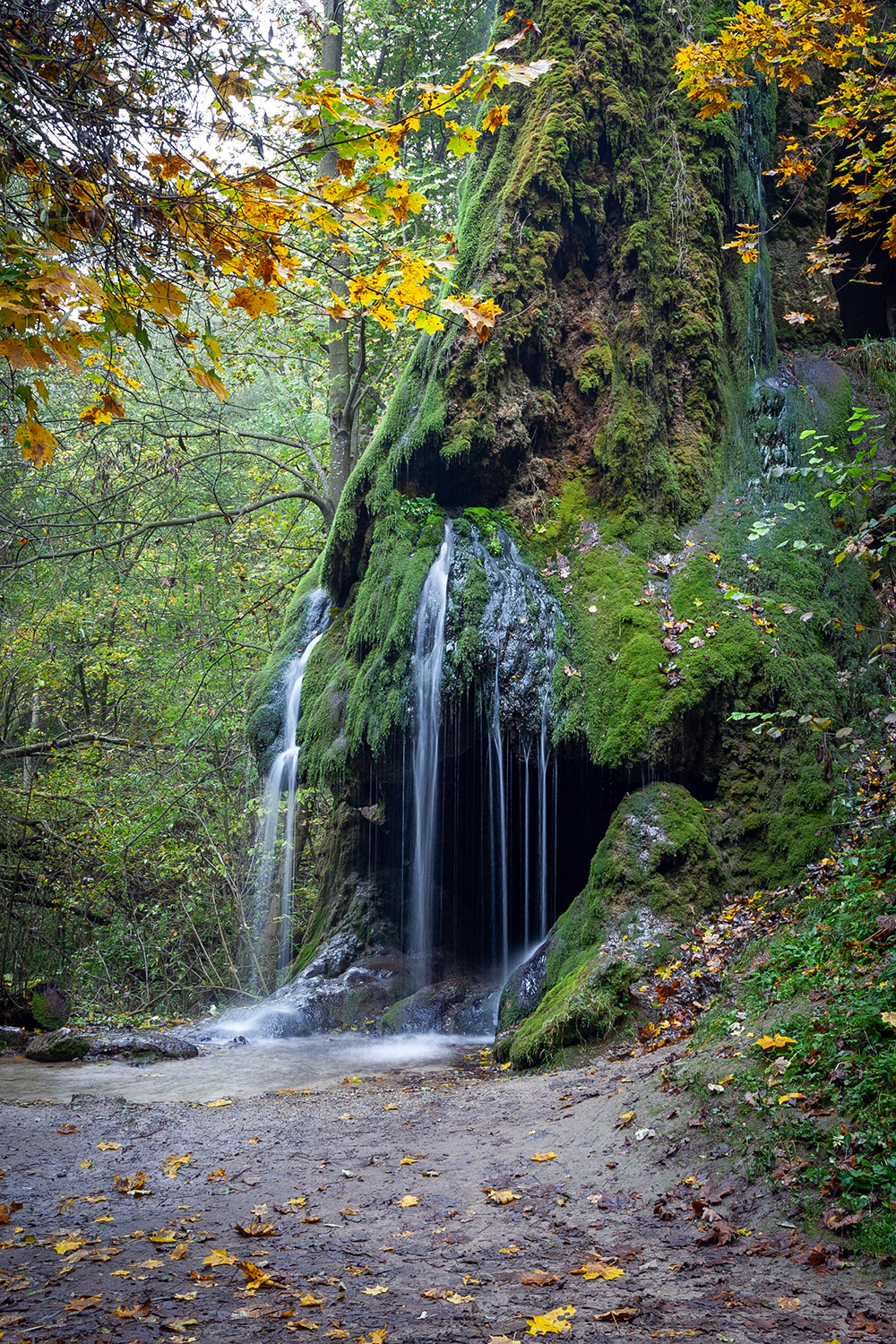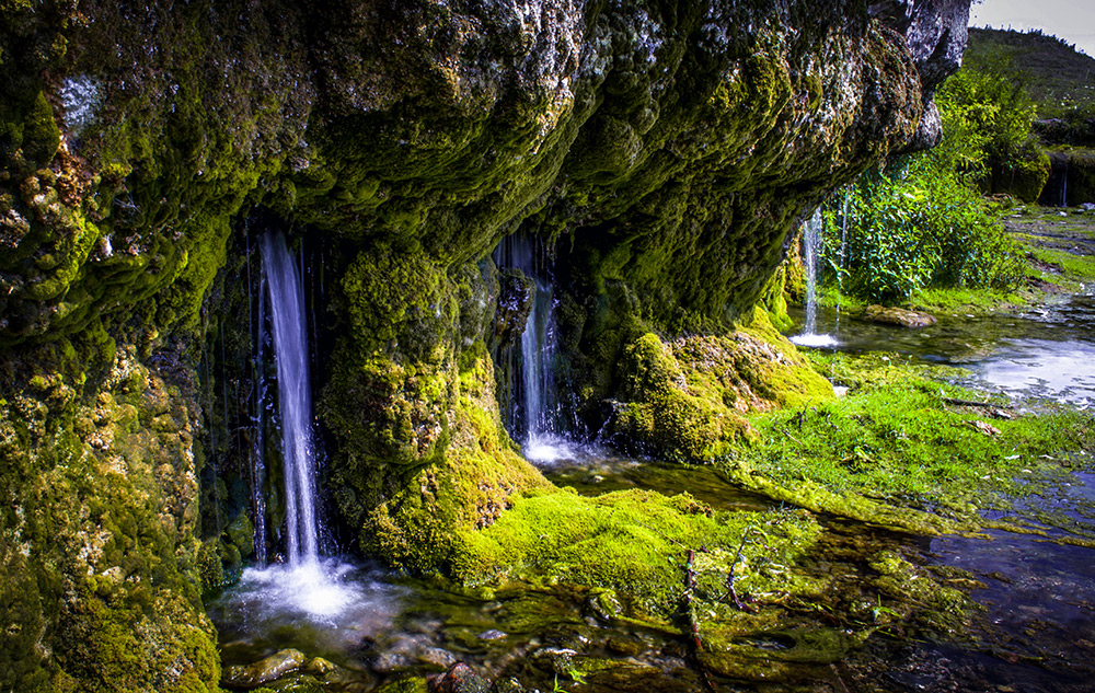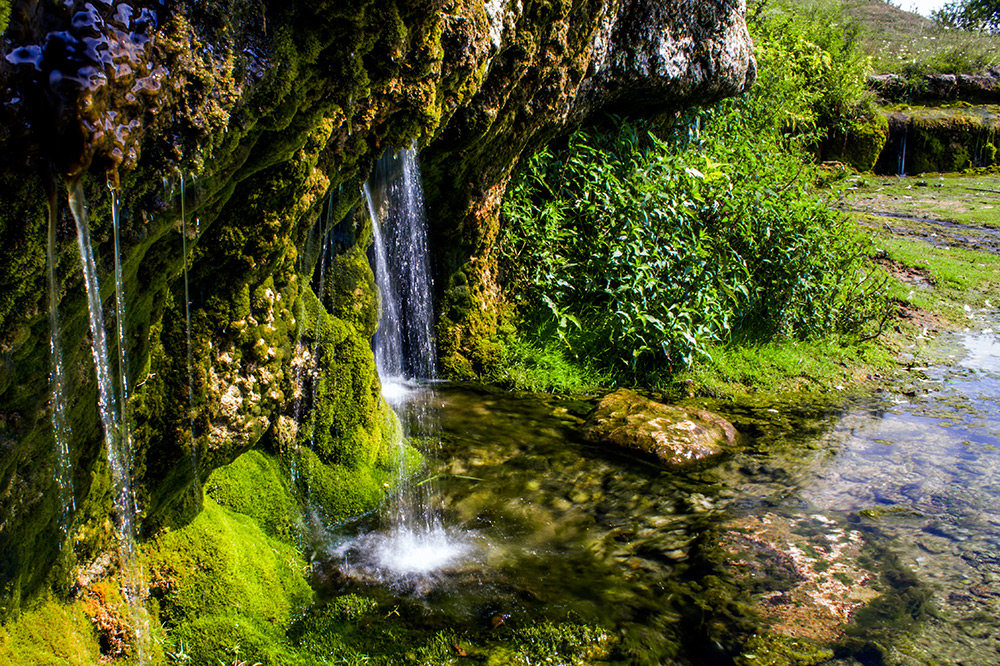 Уявіть собі скельний амфітеатр завдовжки близько 20 метрів і заввишки 2,5–3 метри. З цієї скелі з півметрової висоти спадають півтора десятка сріблястих струменів. Це справжній грандіозний природний фонтан із дуже смачною та чистою водою. Струмені утворюють невеличке озерце, з якого витікає чималий струмок. На жаль, фотографії не здатні передати всю дивовижність цього видовища.