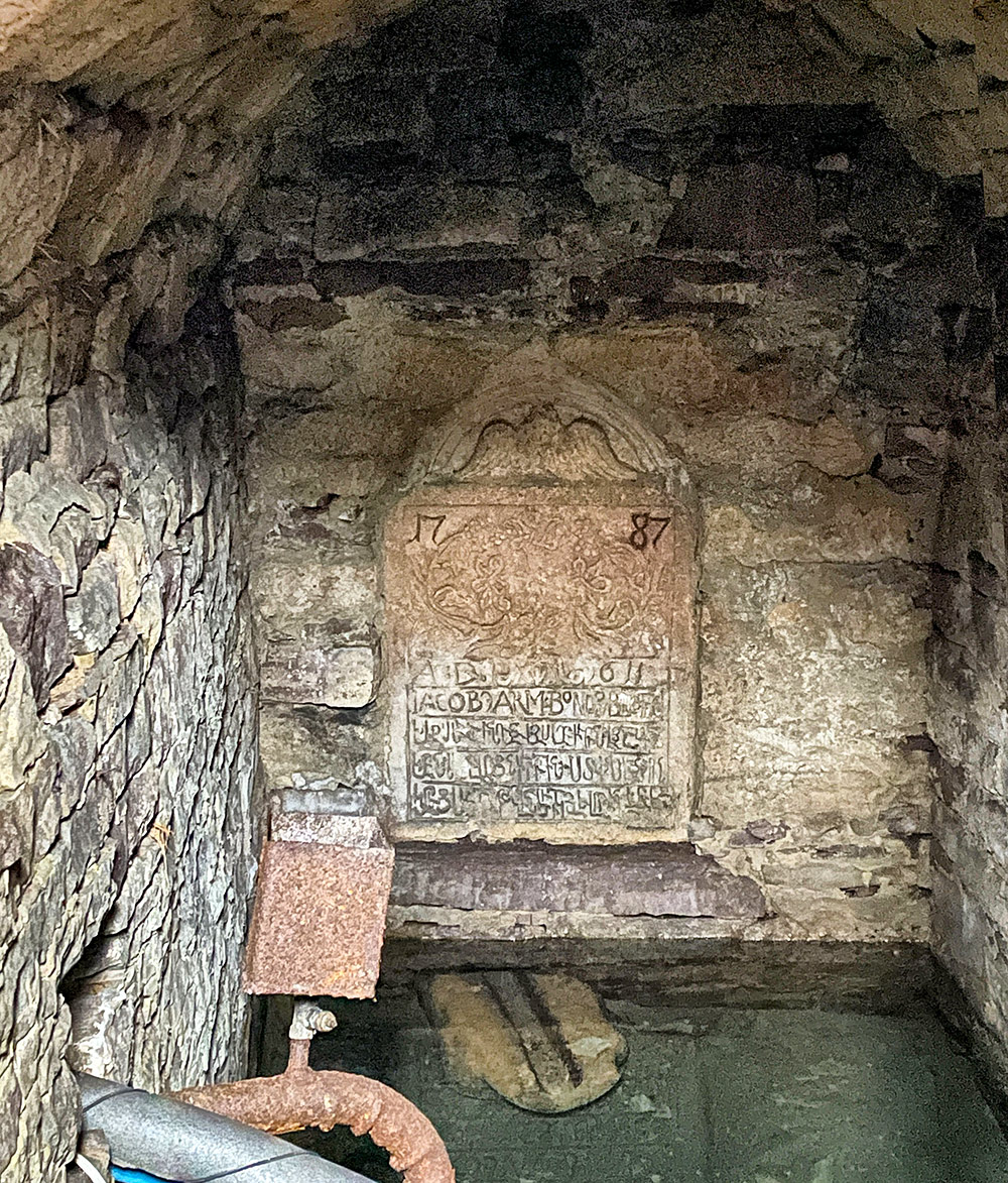 Якщо комусь поталанить зазирнути всередину, можна побачити різьблену плиту з написами латиною та вірменською. Минулого року експедиції команди ГО «Україна Інкогніта» це вдалося.