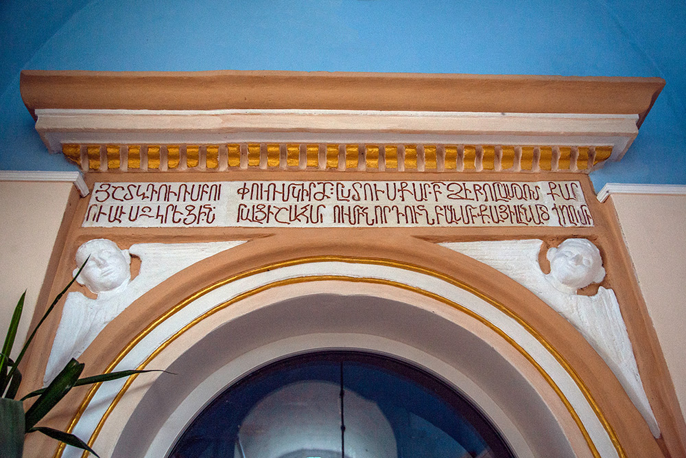 Нижче – вже вірменською: «Цей хрест і побудоване джерело – роботи Акопа та його брата Степана. Закінчені по вірменському літочисленню 1000 і 60 року. Абрам [майстер-різьбяр по каменю] виконав з відданістю». Дата 1787 – це рік чергової реконструкції.