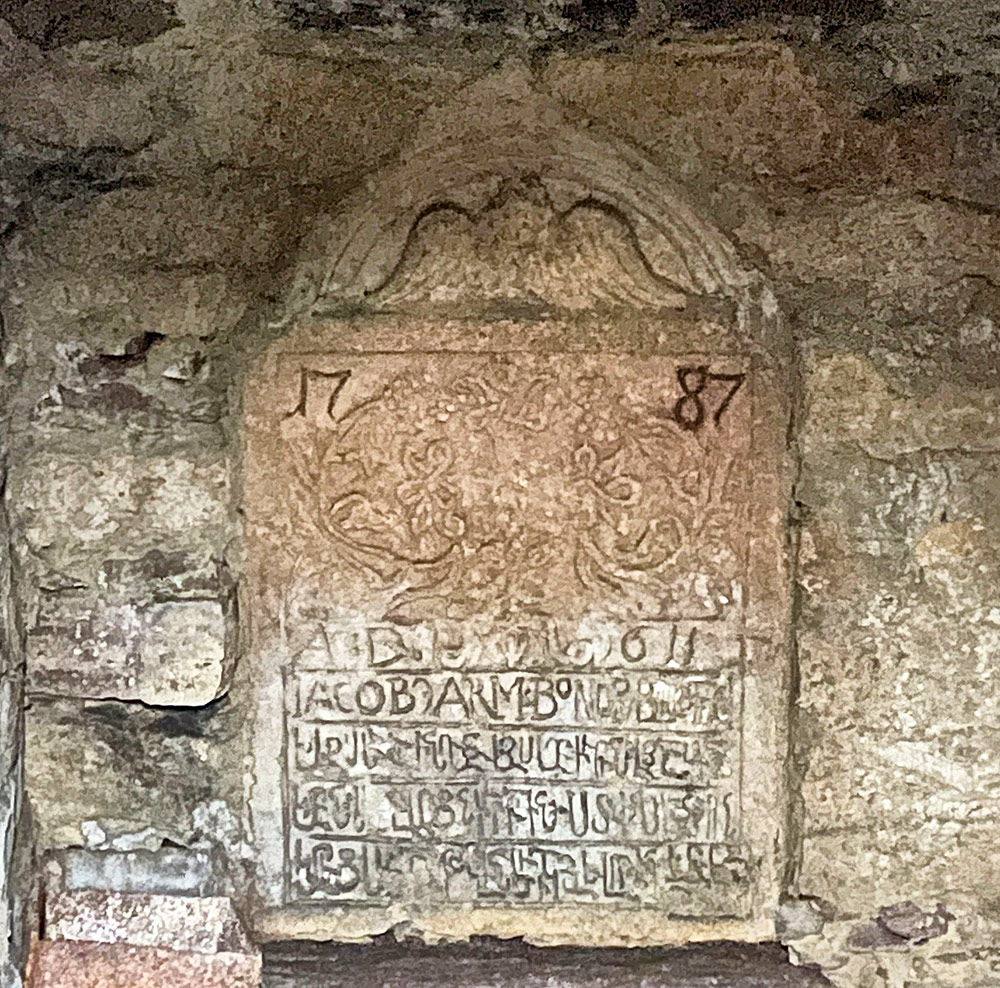 Якщо кому поталанить зазирнути всередину, то можна побачити різьблену плиту з написами, викарбуваними латиною та вірменською. Експедиції команди ГО «Україна Інкогніта» це вдалося.