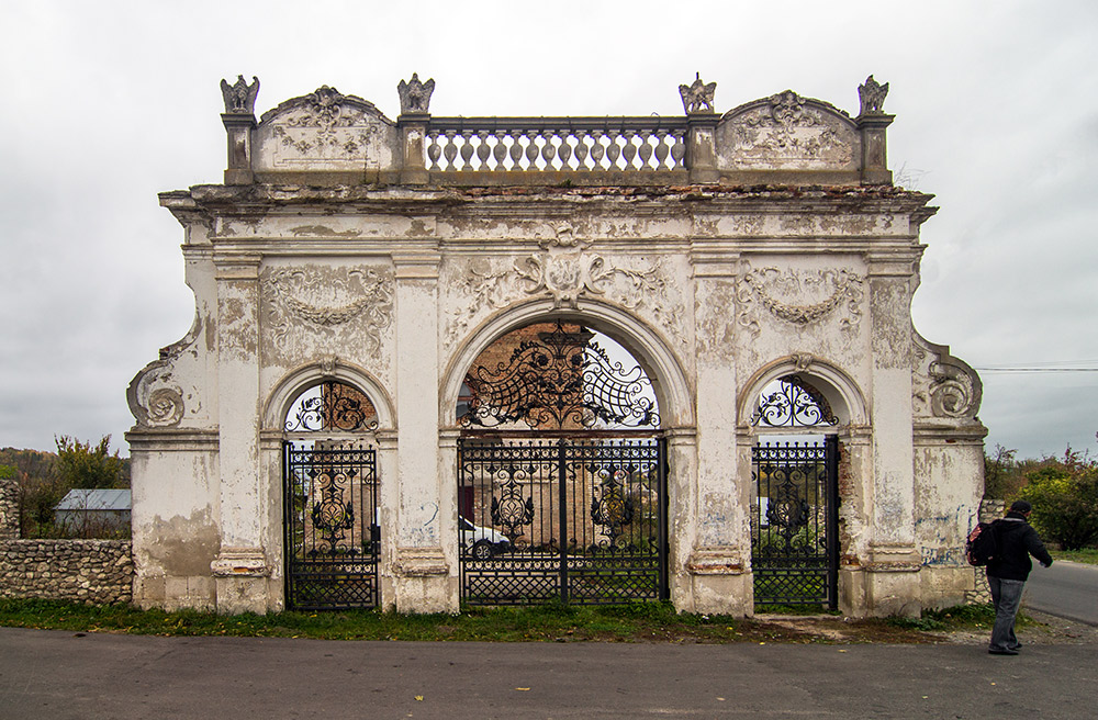 В’їзна брама – єдиний вцілілий елемент колишнього маєтку графів Баворовських, збудованого в першій половині XIX століття. Сам палац, що колись стояв поруч, був знищений під час Першої світової війни. Маєток слугував літньою резиденцією знаменитої шляхетської родини, а його територія включала парк, ставок з острівцями та декоративні містки.