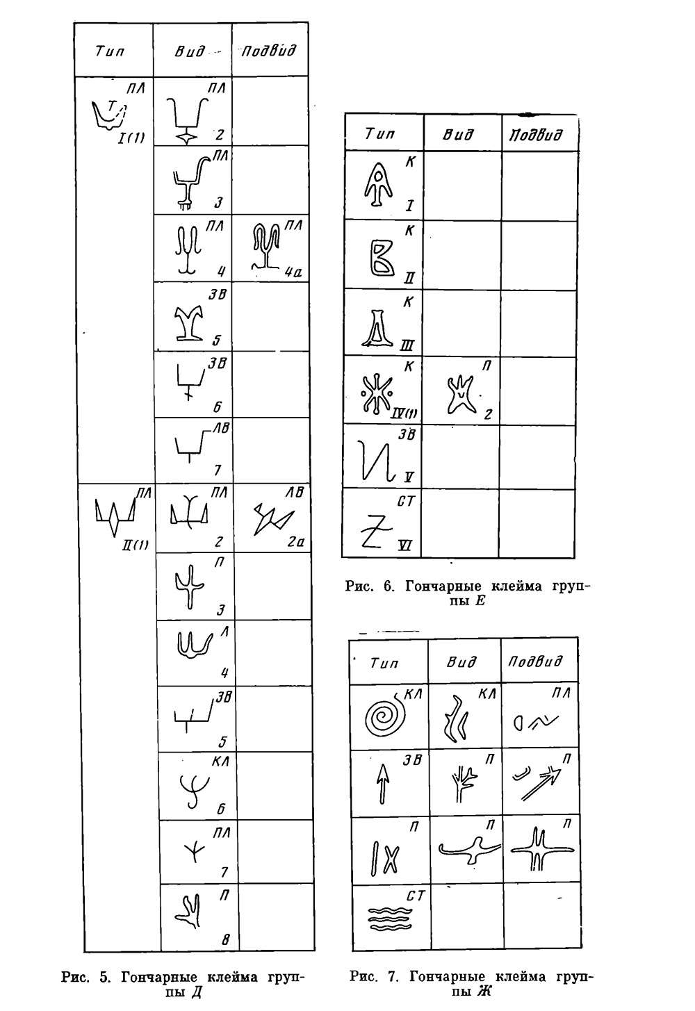 Зокрема, вони розглянуті у праці «Гончарные клейма Прикарпатья и Западной Волыни (опыт систематизации)», авторства відомого українського історика й археолога, доктора історичних наук, старшого наукового співробітника відділу археології Інституту українознавства ім. І. Крип’якевича НАН України Віри Гупало. Дослідження було опубліковане у 4-му числі журналу «Советская археология» за 1985 рік (ілюстрація додається).