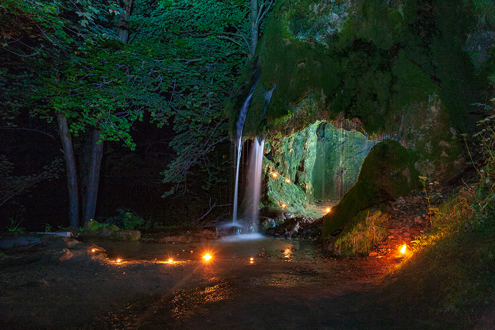 Головна ж родзинка Малієвецького парку — 18-метрова травертинова скеля з дивовижним штучним водоспадом.