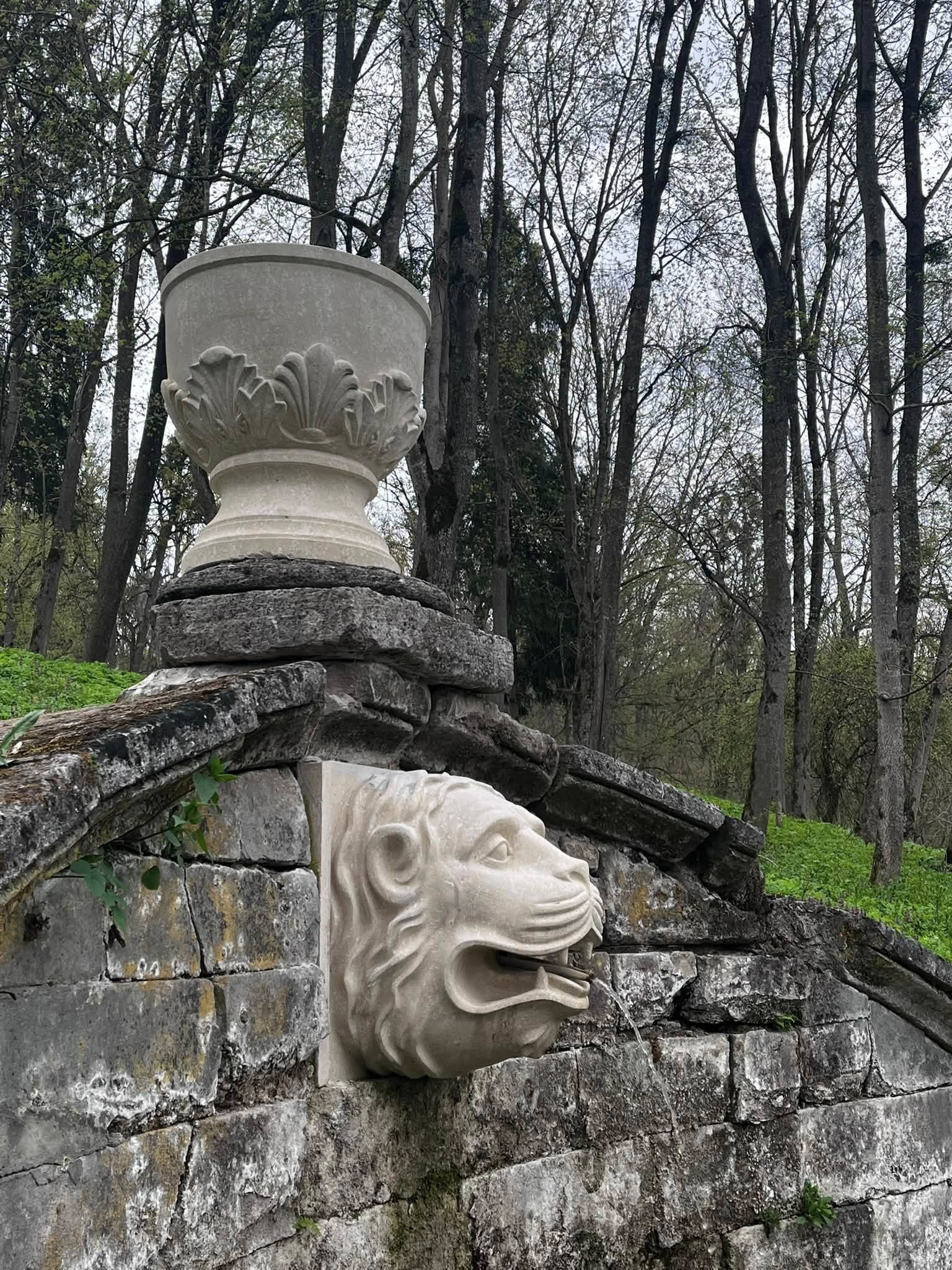 Було встановлено вазу — елемент фонтану «Паща лева». Цей фонтан є частиною унікальної гідротехнічної системи початку ХХ століття: комплексу криниці та водонапірної вежі, що забезпечували водою палац. Вода до фонтану надходила з підземної криниці, а вся система була збудована ще у 1905 році. Сам же струмінь з пащі лева – система переливу з криниці.